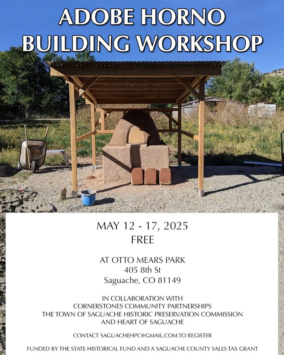 Join Heart of Saguache and Cornerstones Community Partnerships for a free, hands-on workshop where you’ll learn the traditional techniques of building an adobe horno (outdoor oven). This six-day workshop offers a unique opportunity to participate in preserving and practicing traditional building methods while creating a lasting community asset.