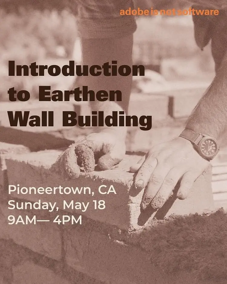 Join Adobe Is Not Software for an immersive, hands-on introduction to earthen wall building at a historic homestead ranch in Pioneertown. This workshop is open to all experience levels and backgrounds, and is AIA accredited for HSW Learning Units (ideal for architectural professionals).