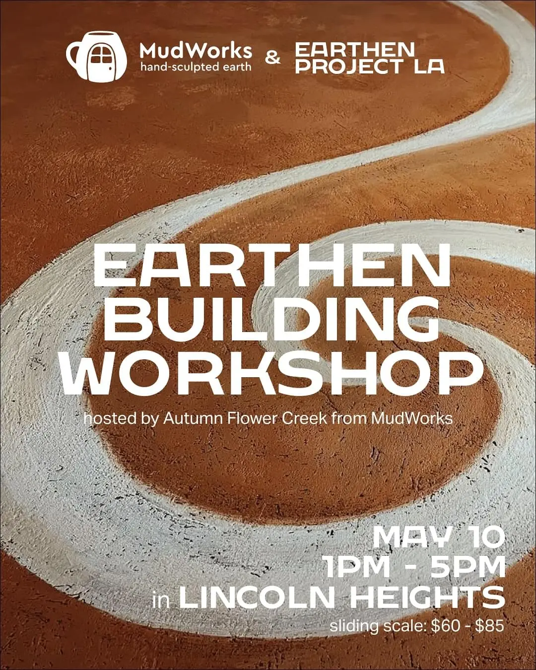 Join Earthen Project LA & MudWorks Build Saturday, May 24th for a half-day, hands-on earthen building workshop facilitated by the talented Autumn Flower Creek from @mudworks.build!