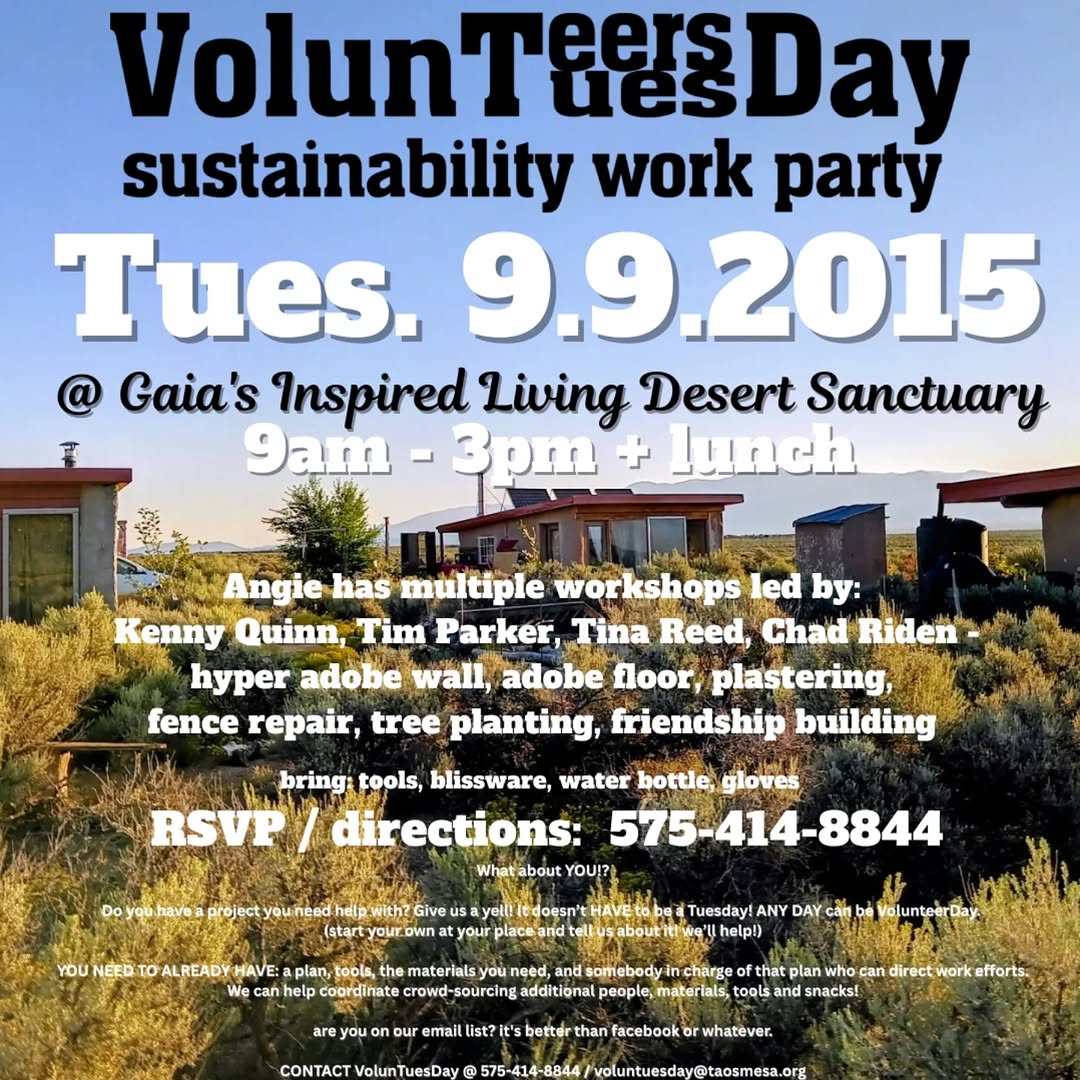 Join natural builder Chad Riden for VolunTuesDay, a volunteer work day at Angie’s place. This community event offers hands-on experience with natural building techniques while contributing to a meaningful project.